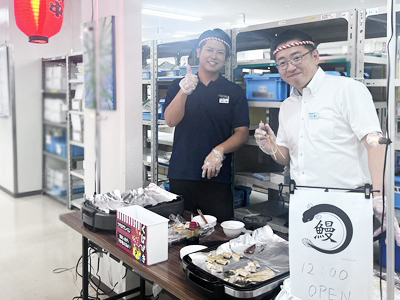 社員みんな、おなかを空かせてランチタイムを楽しみにしていたこともあり、お昼のチャイムと同時に行列が…!本当においしいウナギをいただくことができ、夏の思い出が1つ増えました。